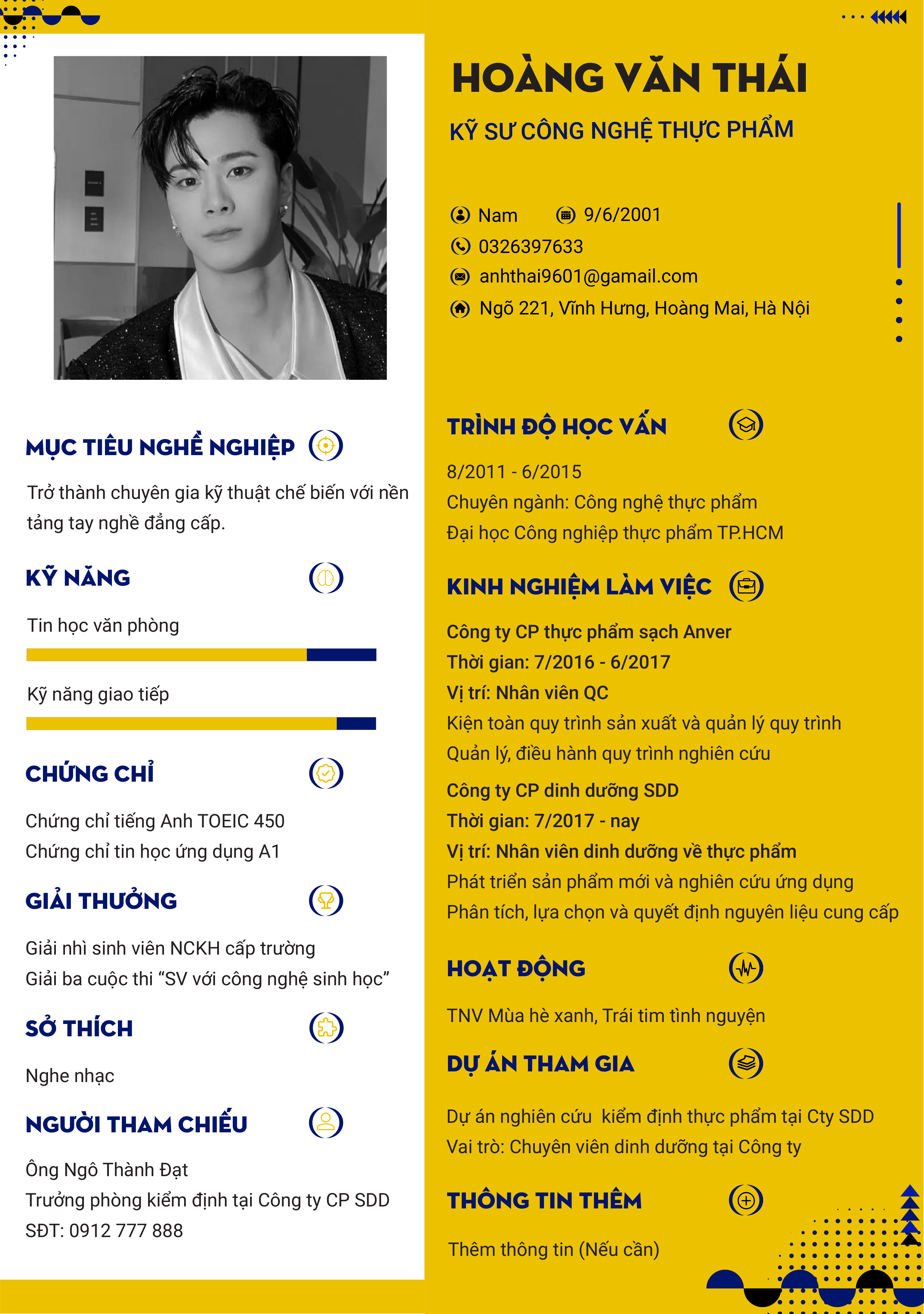 Vai trò: Nhân viên đầu bếp đại diện của Công ty Cổ phần Bất động sản Syrena Phú Quốc