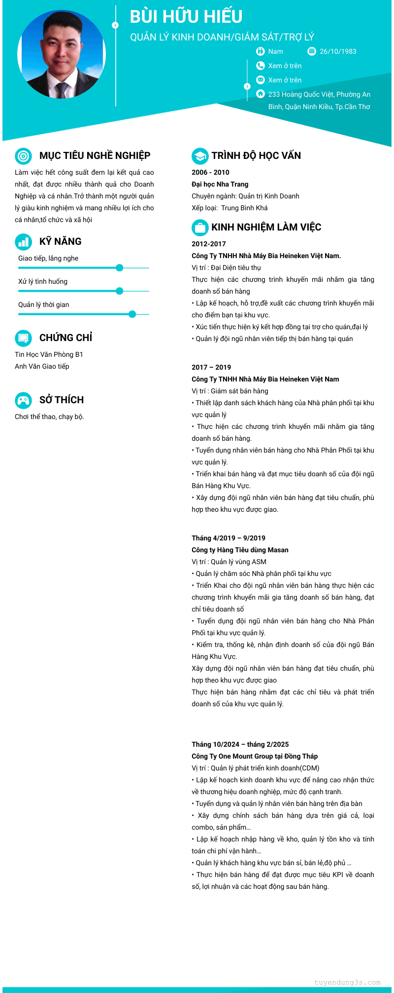 Mở xem thông tin đầy đủ ứng viên BÙI HỮU HIẾU chỉ với 2 điểm. Ứng viên được cập nhật ngày 05/10/2025