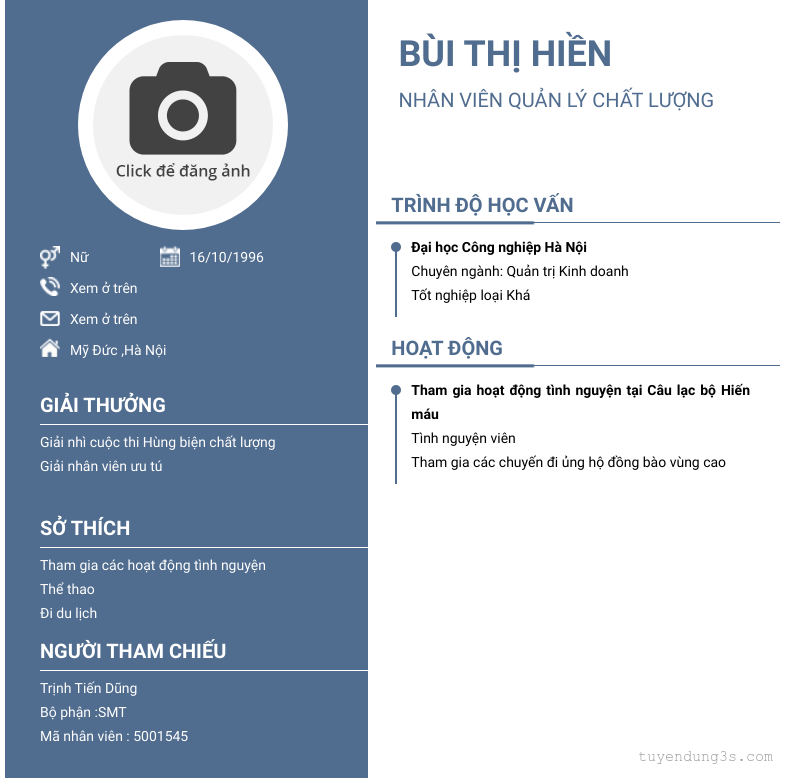 Nơi ở hiện tại: Mỹ Đức , Hà Nội