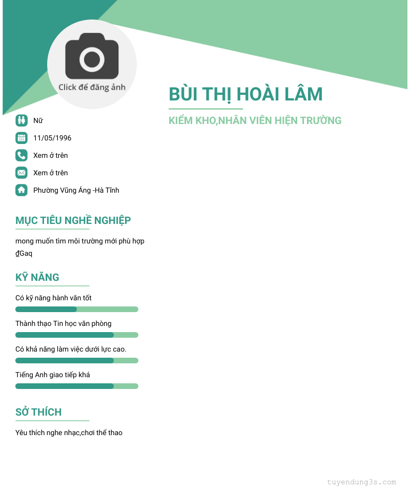 Nơi ở hiện tại: Phường Vũng Áng -Hà Tĩnh