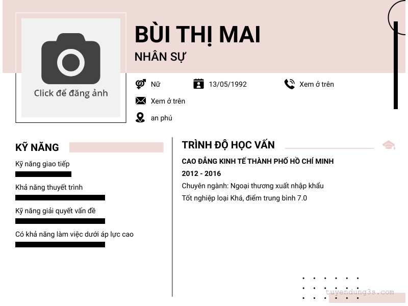 Mở xem thông tin đầy đủ ứng viên Bùi Thị Mai chỉ với 2 điểm. Ứng viên được cập nhật ngày 30/03/2026