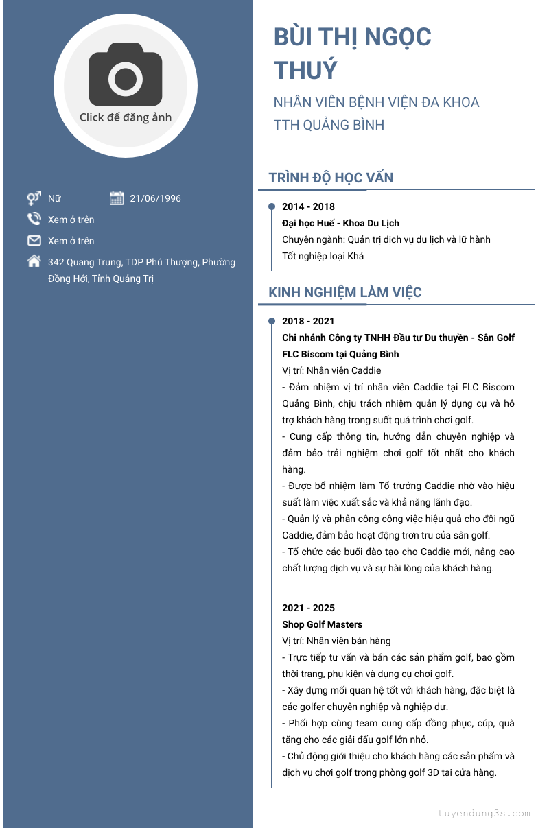 Mở xem thông tin đầy đủ ứng viên BÙI THỊ NGỌC THUÝ chỉ với 2 điểm. Ứng viên được cập nhật ngày 01/04/2026