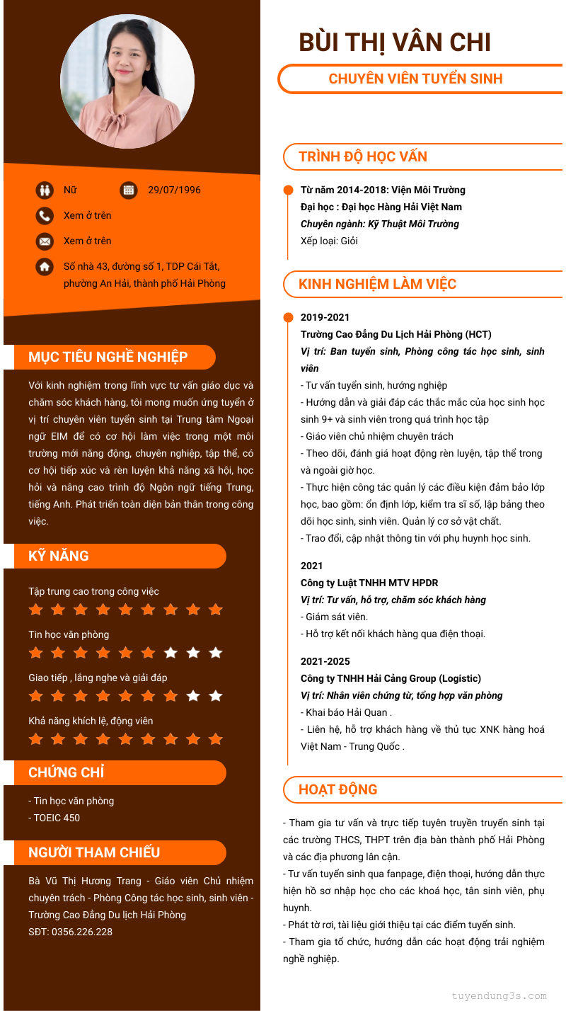 Vị trí: Chuyên viên tuyển sinh