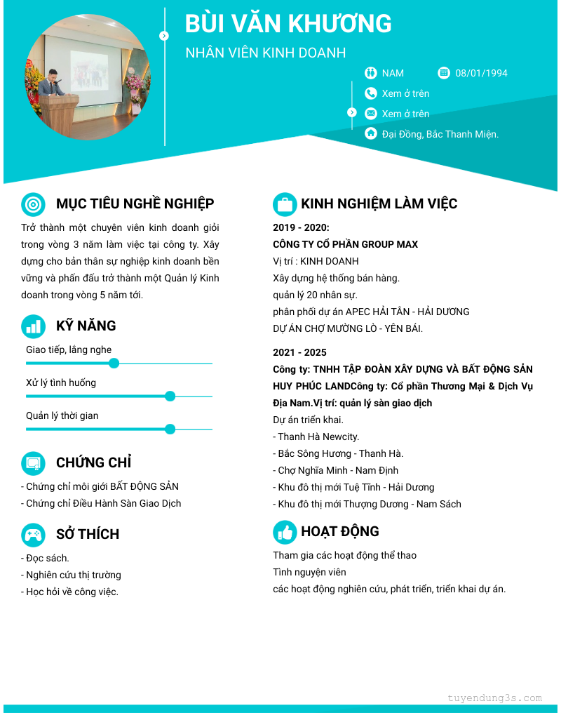 Mở xem thông tin đầy đủ ứng viên BÙI VĂN KHƯƠNG chỉ với 2 điểm. Ứng viên được cập nhật ngày 10/01/2026