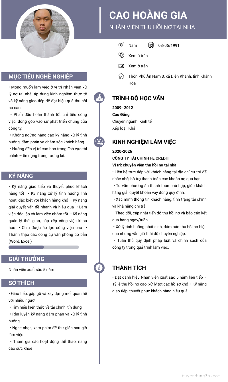 Mở xem thông tin đầy đủ ứng viên Cao Hoàng Gia chỉ với 2 điểm. Ứng viên được cập nhật ngày 20/03/2026