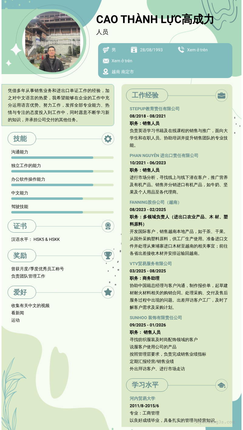 Mở xem thông tin đầy đủ ứng viên Cao Thành Lực高成力 chỉ với 2 điểm. Ứng viên được cập nhật ngày 29/01/2026