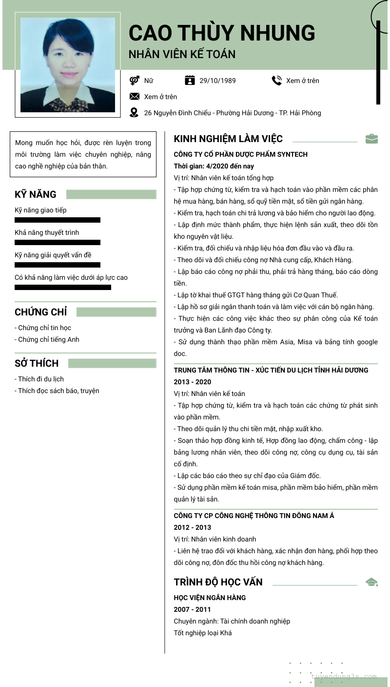 Mở xem thông tin đầy đủ ứng viên CAO THÙY NHUNG chỉ với 2 điểm. Ứng viên được cập nhật ngày 29/11/2025