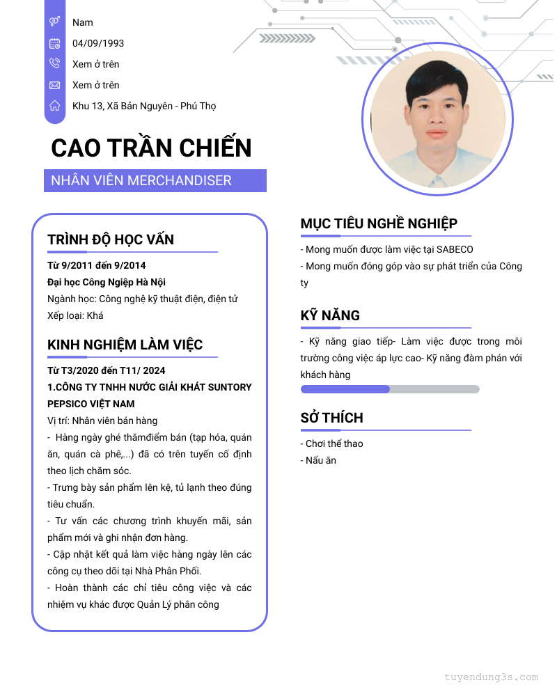 Mở xem thông tin đầy đủ ứng viên CAO TRẦN CHIẾN chỉ với 2 điểm. Ứng viên được cập nhật ngày 30/09/2025