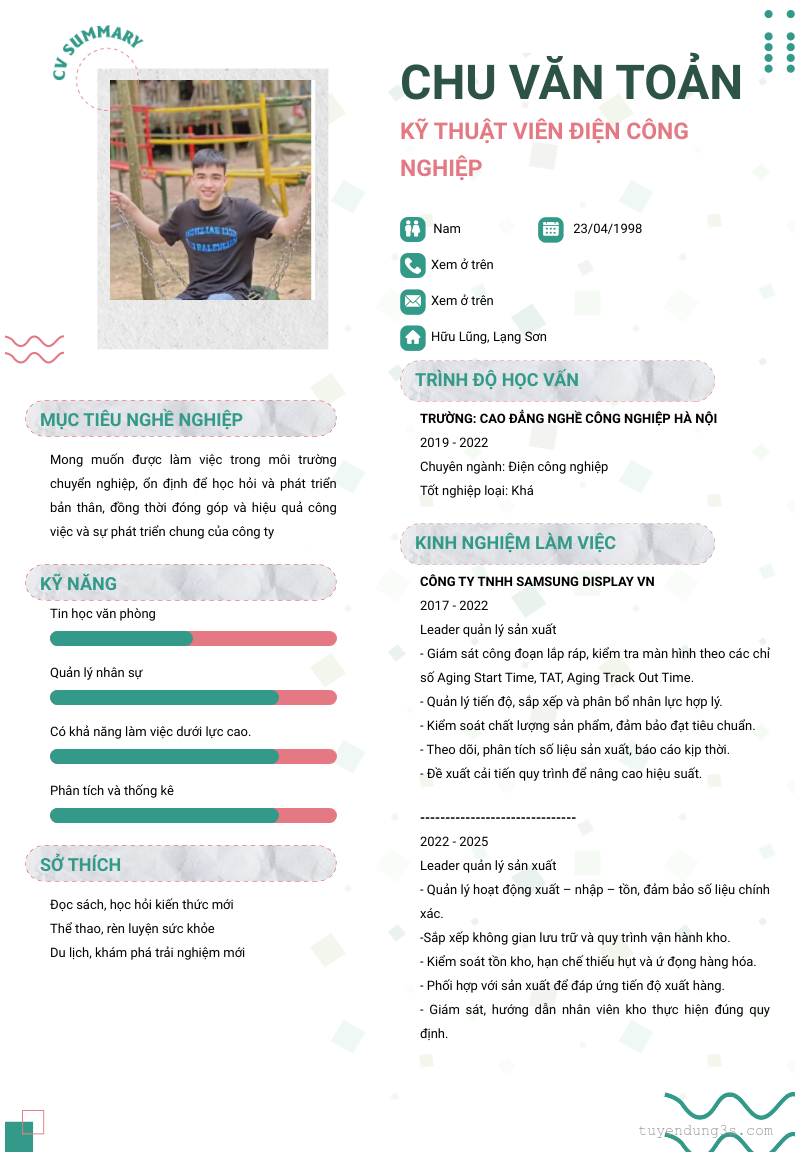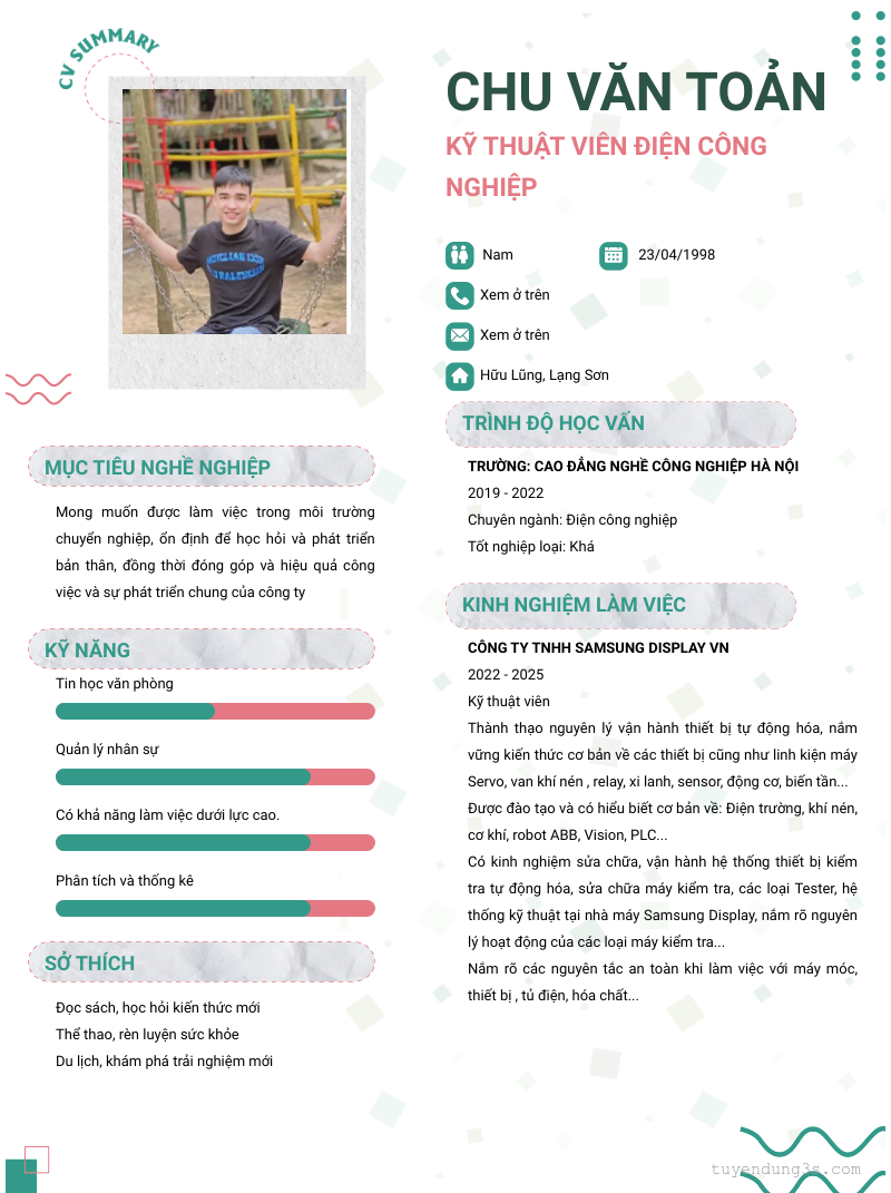 Mở xem thông tin đầy đủ ứng viên CHU Văn Toản chỉ với 2 điểm. Ứng viên được cập nhật ngày 25/09/2025