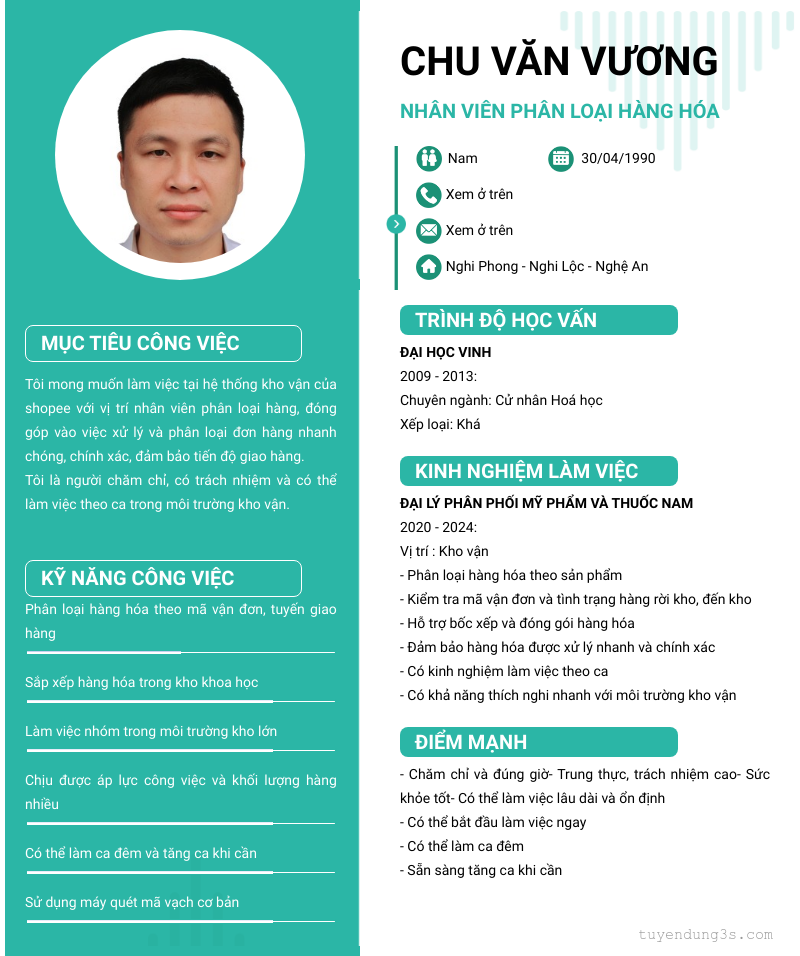Mở xem thông tin đầy đủ ứng viên Chu Văn Vương chỉ với 2 điểm. Ứng viên được cập nhật ngày 12/03/2026