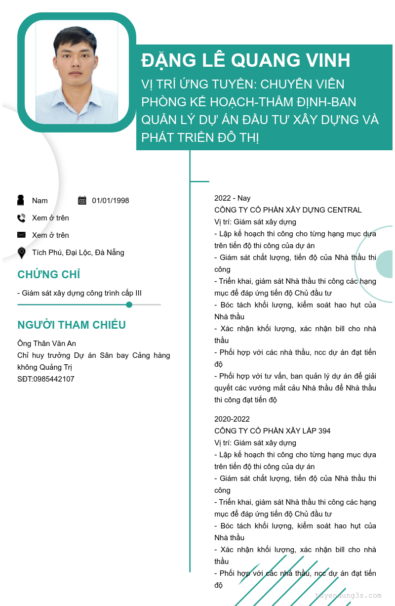 Mở xem thông tin đầy đủ ứng viên ĐẶNG LÊ QUANG VINH chỉ với 2 điểm. Ứng viên được cập nhật ngày 25/02/2026