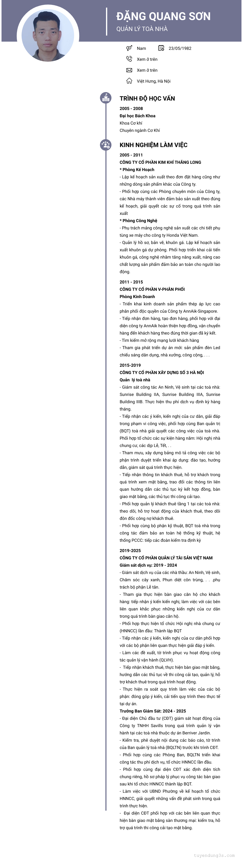 Mở xem thông tin đầy đủ ứng viên đặng Quang Sơn chỉ với 2 điểm. Ứng viên được cập nhật ngày 05/10/2025