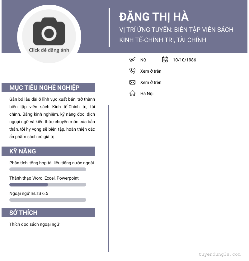 Vị trí ứng tuyển: biên tập viên sách kinh tế-chính trị, tài chính