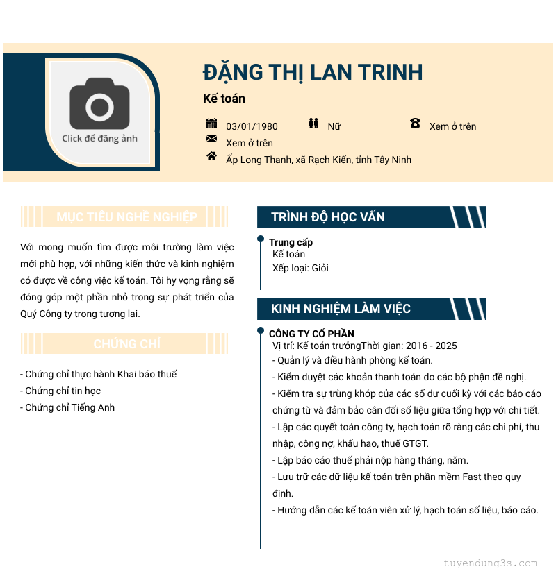 Mở xem thông tin đầy đủ ứng viên đặng Thị Lan Trinh chỉ với 2 điểm. Ứng viên được cập nhật ngày 06/10/2025