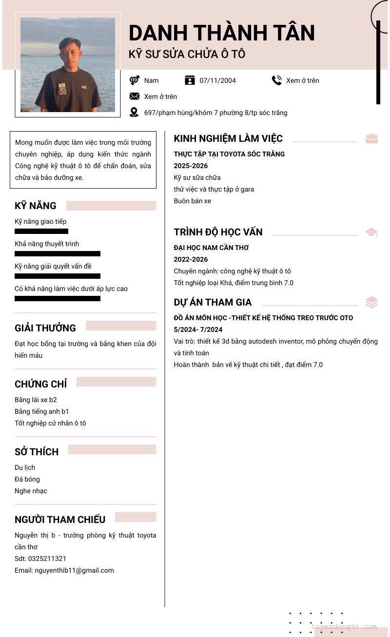 Mở xem thông tin đầy đủ ứng viên Danh Thành Tân chỉ với 2 điểm. Ứng viên được cập nhật ngày 20/10/2025