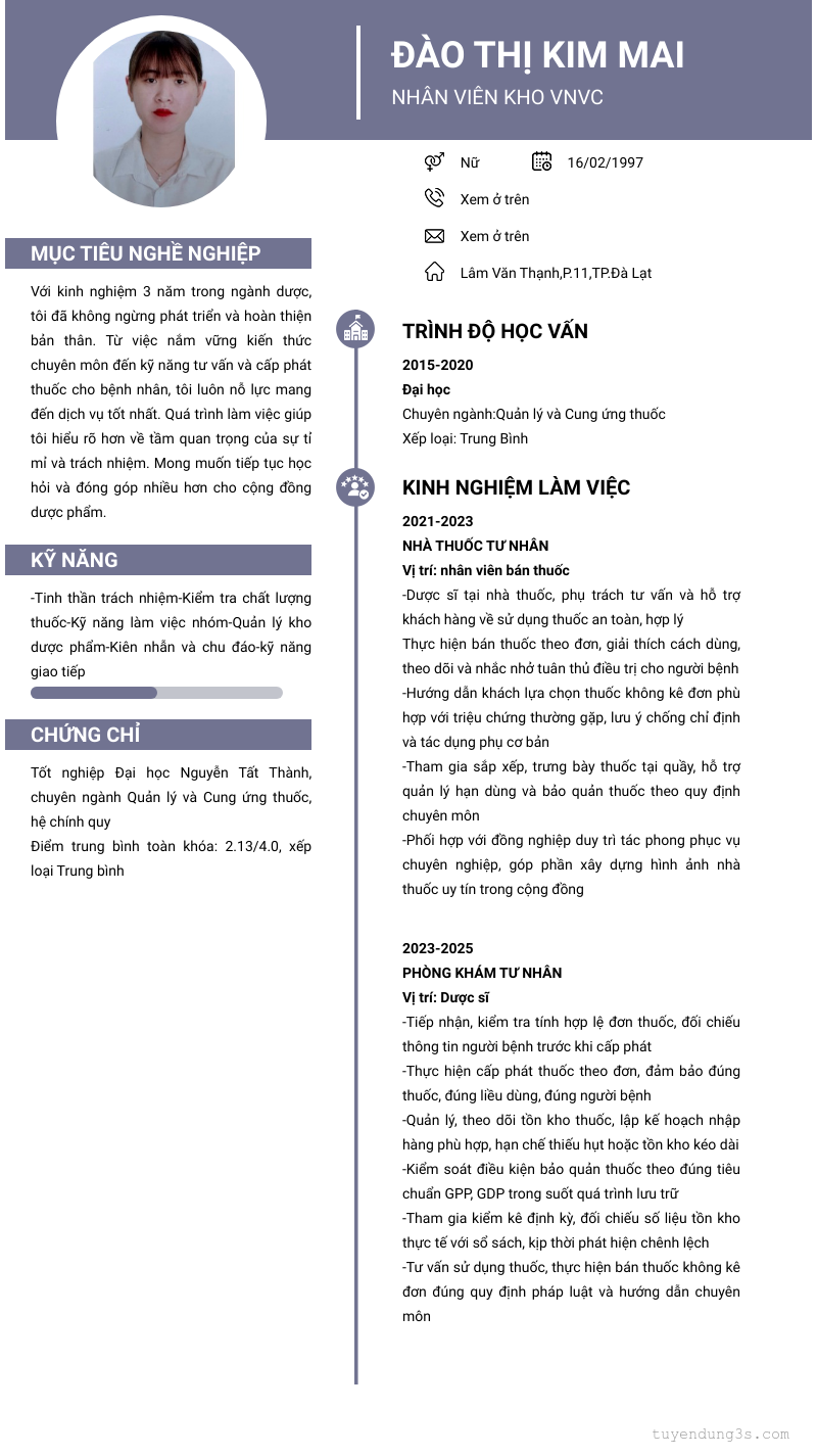 Mở xem thông tin đầy đủ ứng viên đào Thị Kim Mai chỉ với 2 điểm. Ứng viên được cập nhật ngày 19/03/2026
