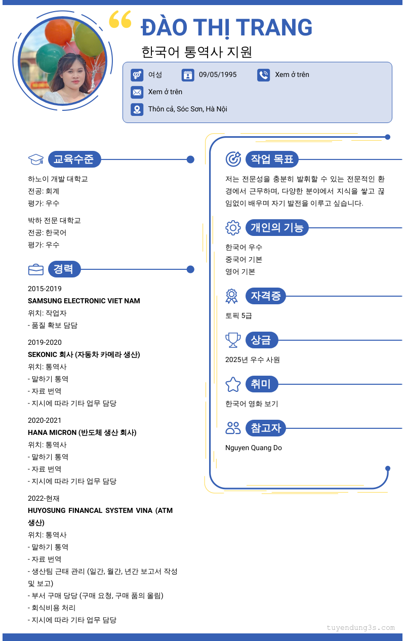 Mở xem thông tin đầy đủ ứng viên đào Thị Trang chỉ với 2 điểm. Ứng viên được cập nhật ngày 25/09/2025
