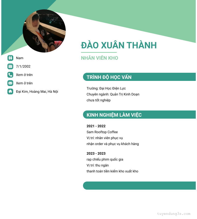 Mở xem thông tin đầy đủ ứng viên đào Xuân Thành chỉ với 2 điểm. Ứng viên được cập nhật ngày 13/03/2024