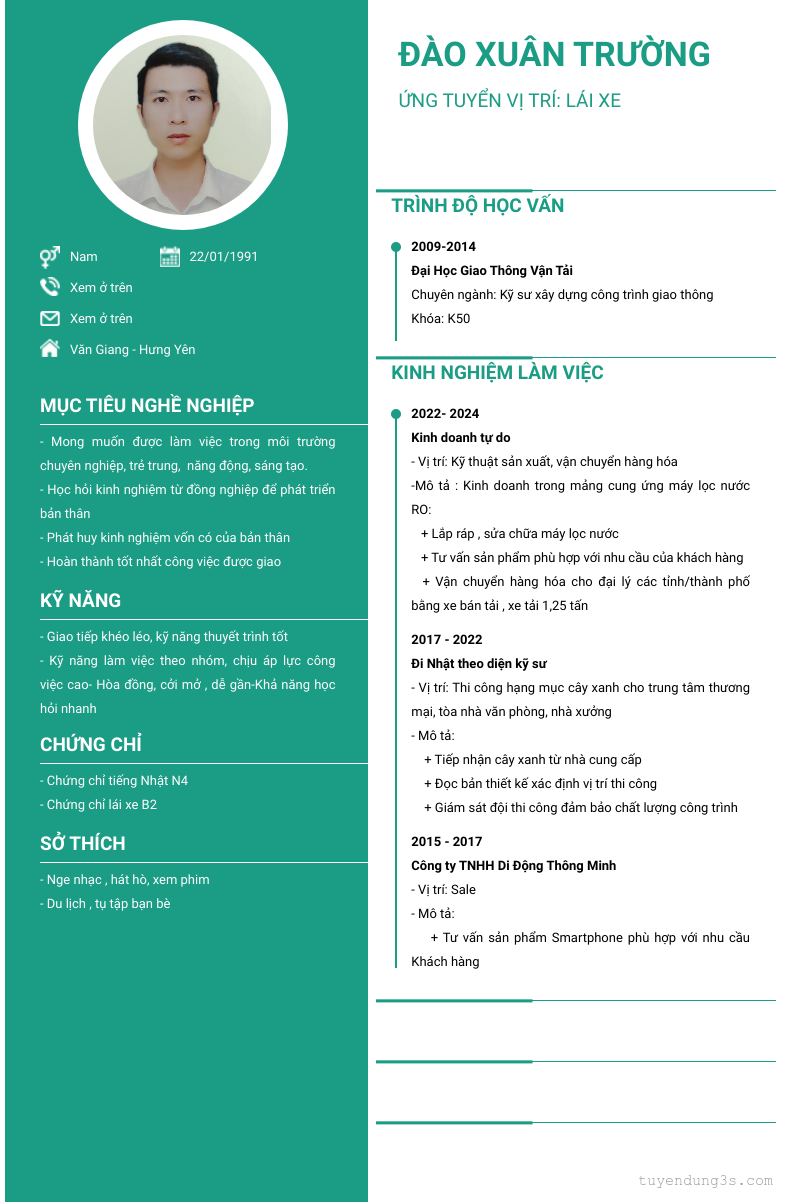 Mở xem thông tin đầy đủ ứng viên Đào Xuân Trường chỉ với 2 điểm. Ứng viên được cập nhật ngày 13/03/2024