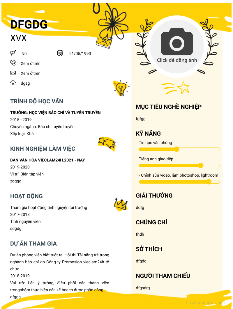 Mở xem thông tin đầy đủ ứng viên Dfgdg chỉ với 2 điểm. Ứng viên được cập nhật ngày 19/12/2025