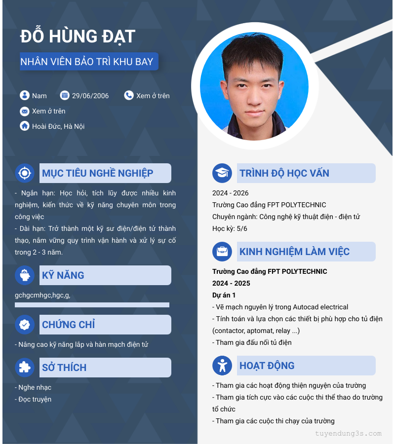 Mở xem thông tin đầy đủ ứng viên ĐỖ HÙNG ĐẠT chỉ với 2 điểm. Ứng viên được cập nhật ngày 16/03/2026