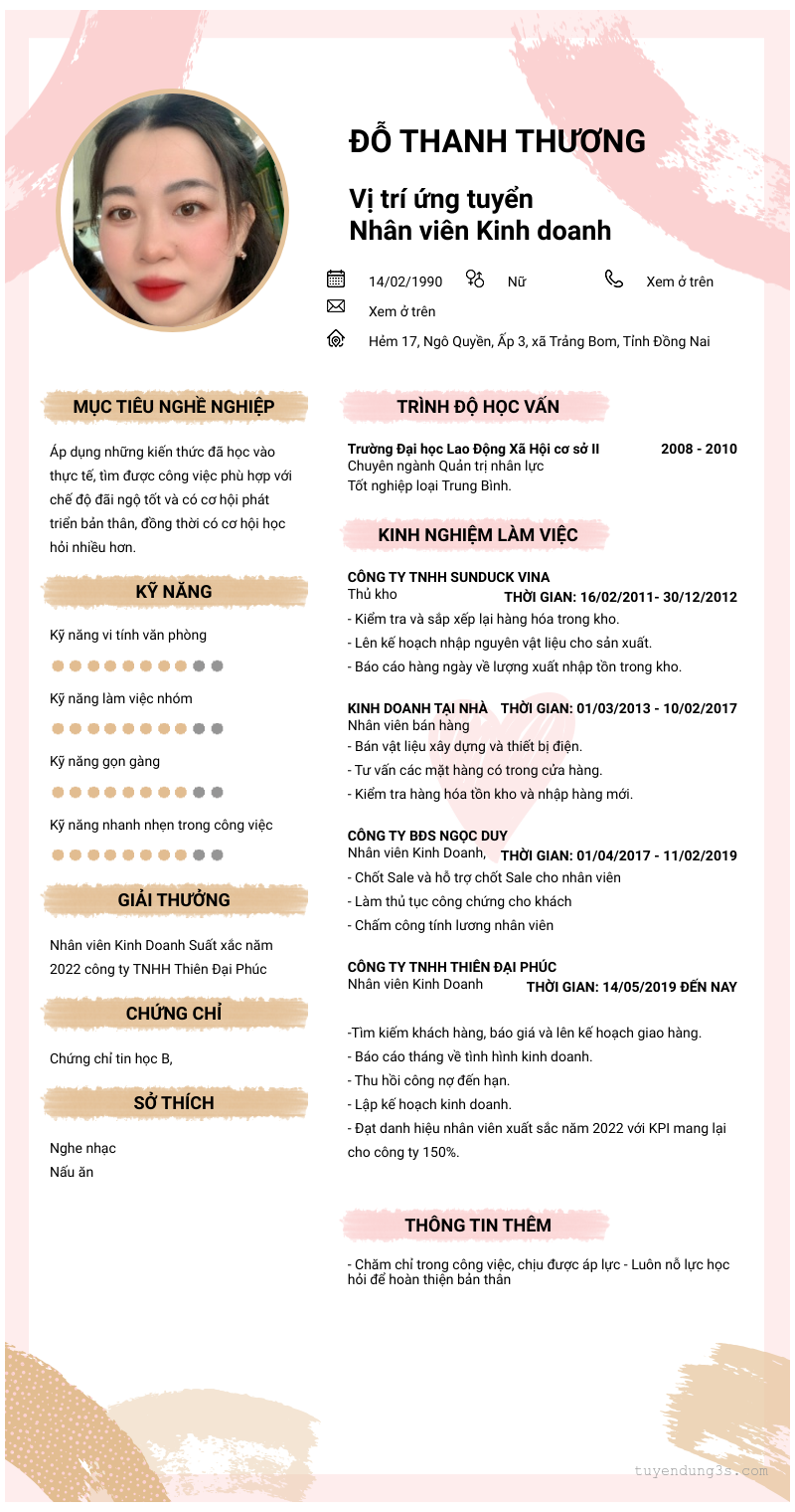 Mở xem thông tin đầy đủ ứng viên ĐỖ THANH THƯƠNG chỉ với 2 điểm. Ứng viên được cập nhật ngày 04/12/2025