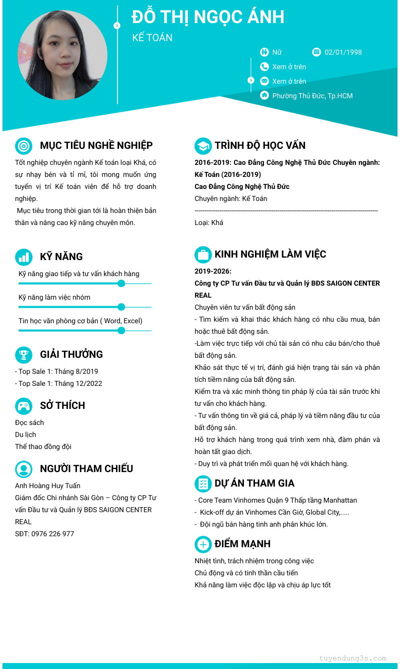 Mở xem thông tin đầy đủ ứng viên ĐỖ THỊ NGỌC ÁNH chỉ với 2 điểm. Ứng viên được cập nhật ngày 10/03/2026
