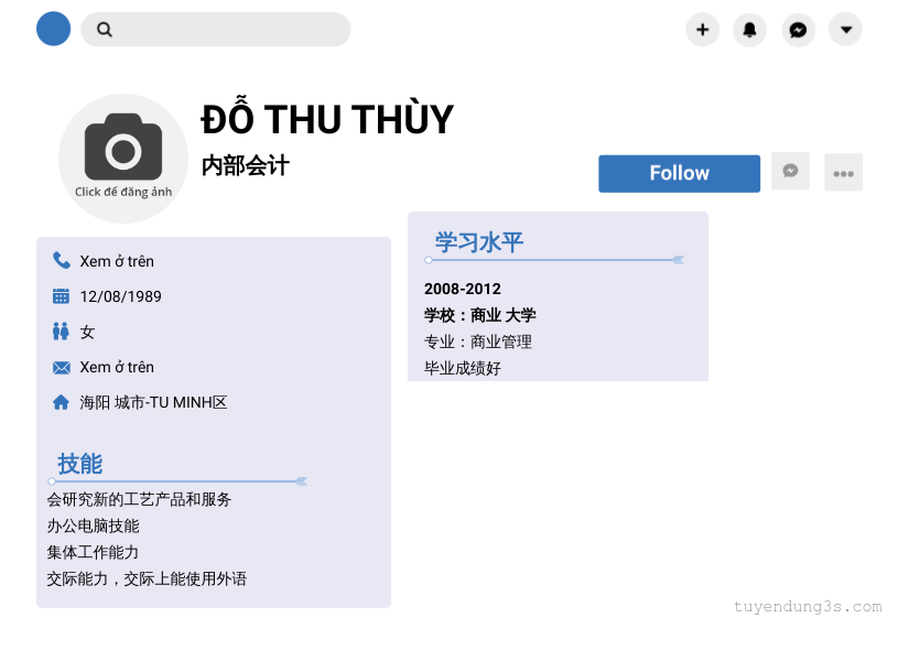 Mở xem thông tin đầy đủ ứng viên ĐỖ THU THÙY chỉ với 2 điểm. Ứng viên được cập nhật ngày 13/11/2025