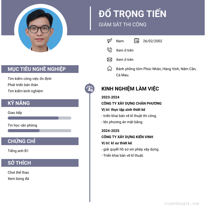 Mở xem thông tin đầy đủ ứng viên ĐỔ Trọng Tiến chỉ với 2 điểm. Ứng viên được cập nhật ngày 23/02/2026