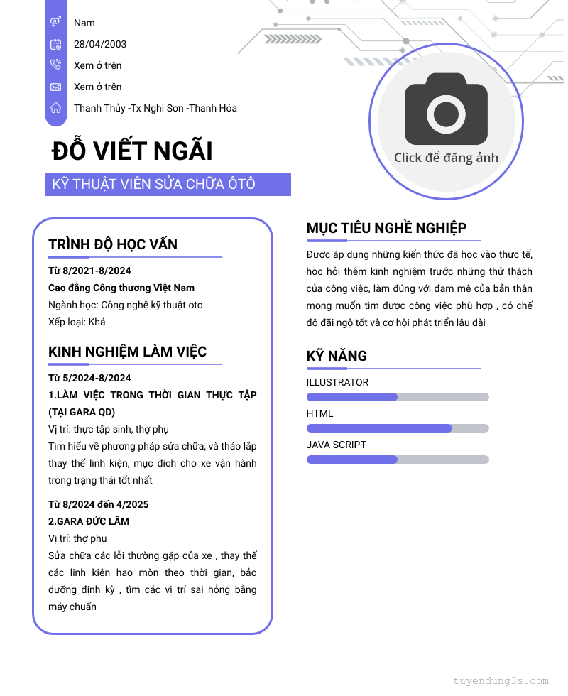 Mở xem thông tin đầy đủ ứng viên Đỗ Viết Ngãi chỉ với 2 điểm. Ứng viên được cập nhật ngày 12/02/2026