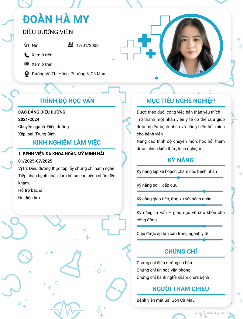 Mở xem thông tin đầy đủ ứng viên Đoàn Hà My chỉ với 2 điểm. Ứng viên được cập nhật ngày 23/10/2025