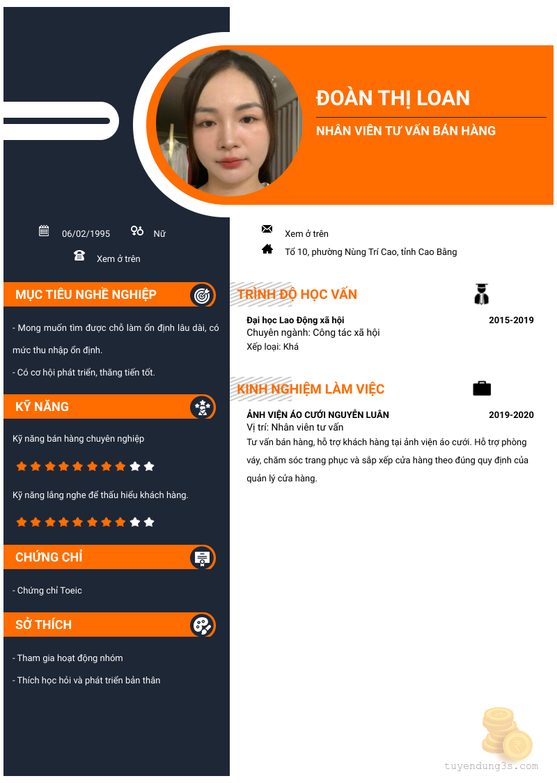 Mở xem thông tin đầy đủ ứng viên ĐOÀN THỊ LOAN chỉ với 2 điểm. Ứng viên được cập nhật ngày 26/12/2025