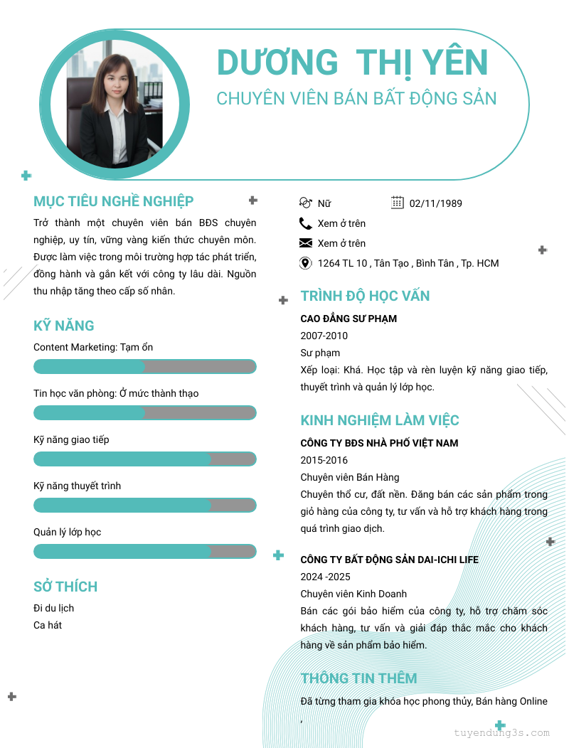Mở xem thông tin đầy đủ ứng viên Dương Thị Yên chỉ với 2 điểm. Ứng viên được cập nhật ngày 02/11/2025