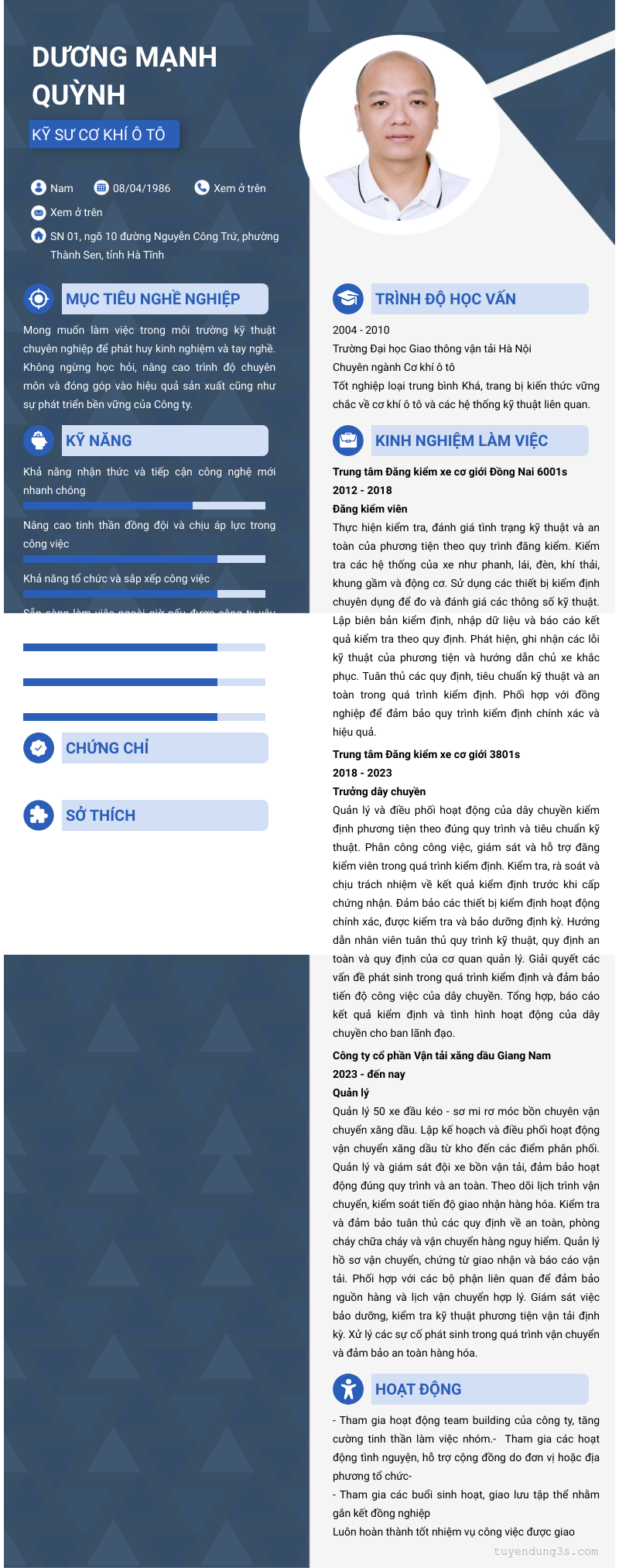 Mở xem thông tin đầy đủ ứng viên DƯƠNG MẠNH QUỲNH chỉ với 2 điểm. Ứng viên được cập nhật ngày 17/03/2026