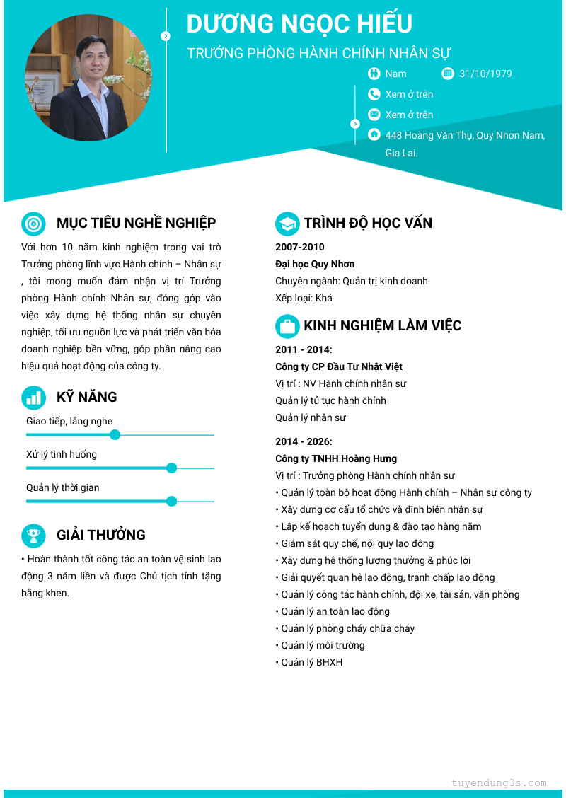 Mở xem thông tin đầy đủ ứng viên DƯƠNG NGỌC HIẾU chỉ với 2 điểm. Ứng viên được cập nhật ngày 14/04/2026