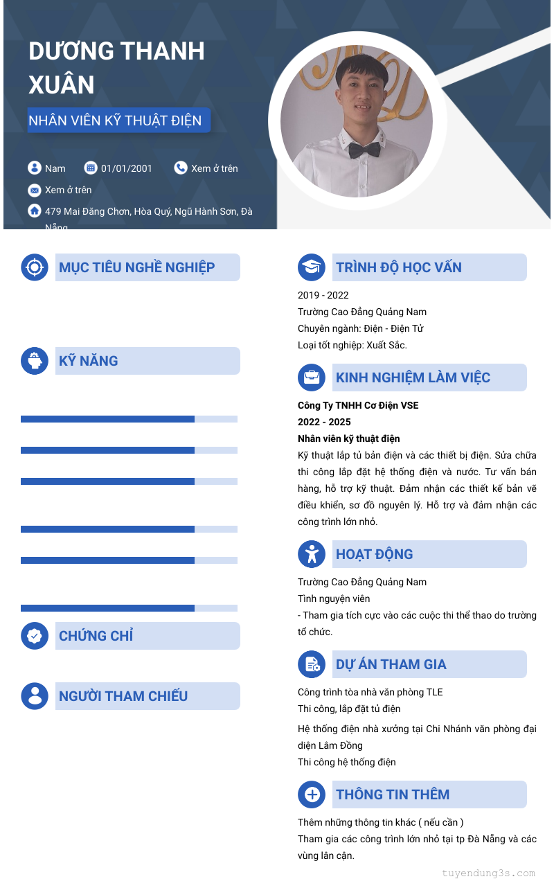 Mở xem thông tin đầy đủ ứng viên DƯƠNG THANH XUÂN chỉ với 2 điểm. Ứng viên được cập nhật ngày 17/12/2025