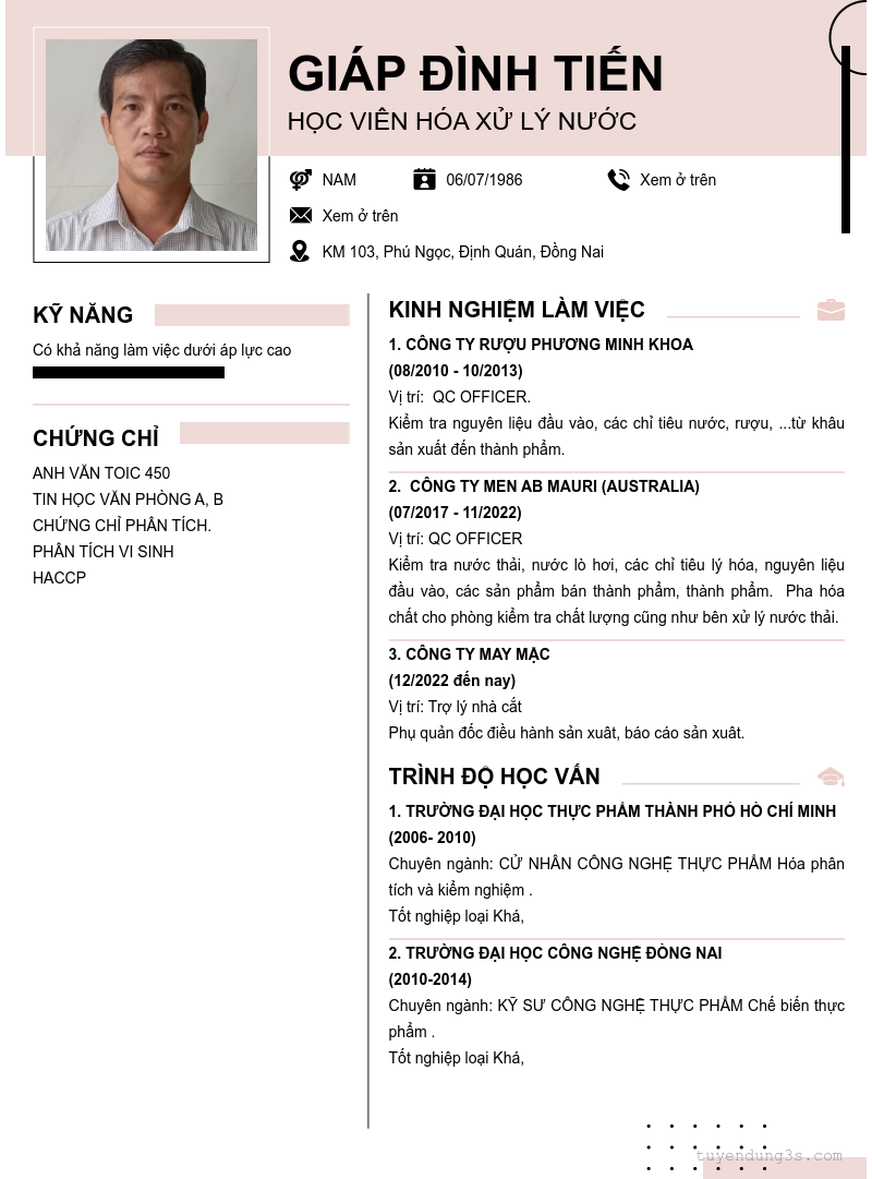 Mở xem thông tin đầy đủ ứng viên Giáp đình Tiến chỉ với 2 điểm. Ứng viên được cập nhật ngày 17/10/2025