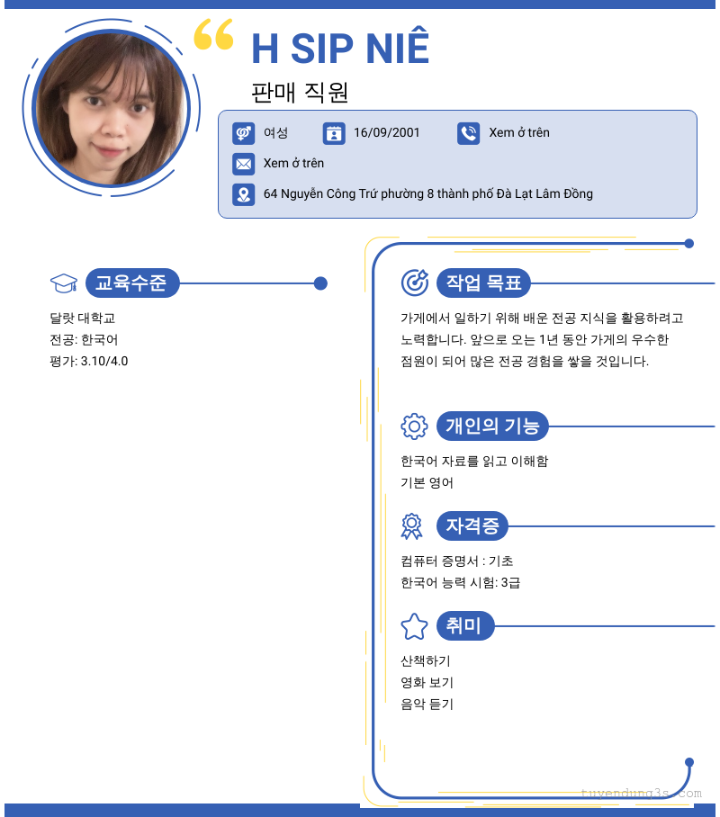 Mở xem thông tin đầy đủ ứng viên H SIP NIÊ chỉ với 2 điểm. Ứng viên được cập nhật ngày 10/01/2026