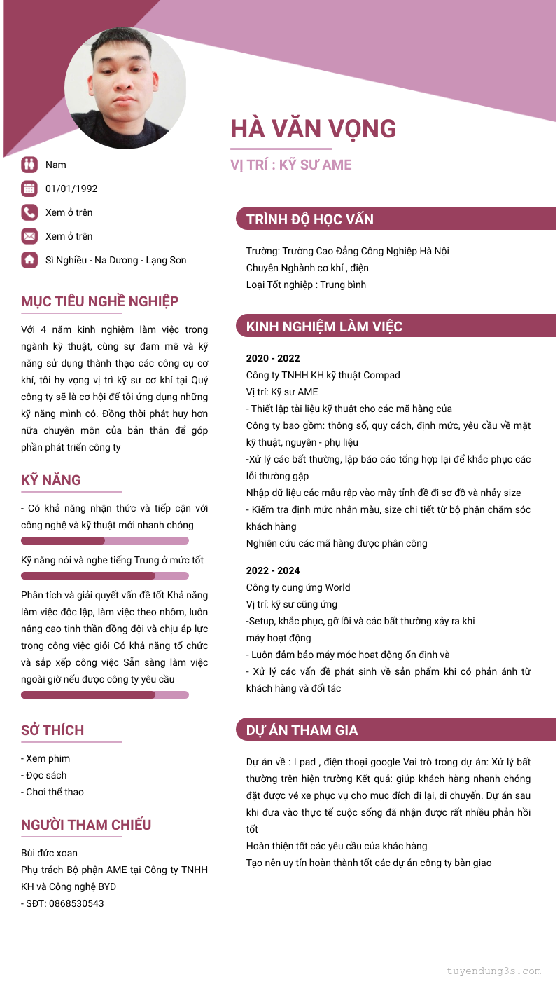 Mở xem thông tin đầy đủ ứng viên Hà Văn Vọng chỉ với 2 điểm. Ứng viên được cập nhật ngày 28/10/2025