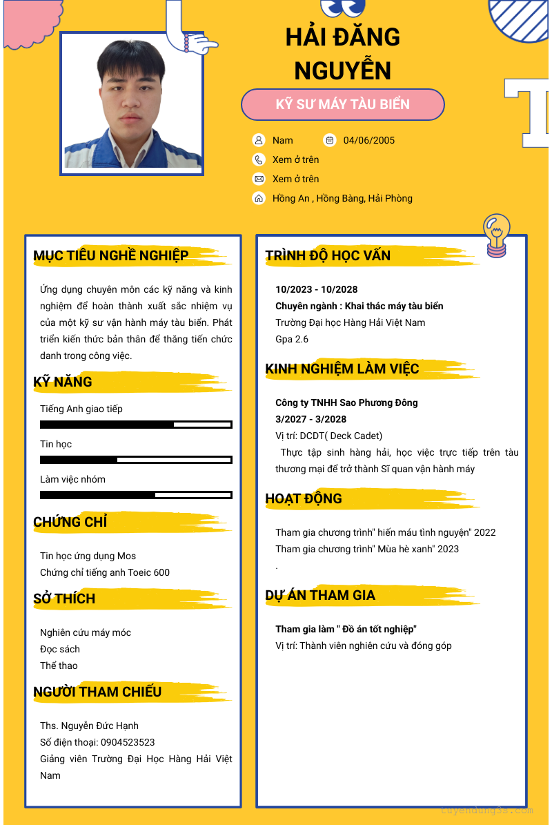 Mở xem thông tin đầy đủ ứng viên Hải Đăng Nguyễn chỉ với 2 điểm. Ứng viên được cập nhật ngày 19/03/2026