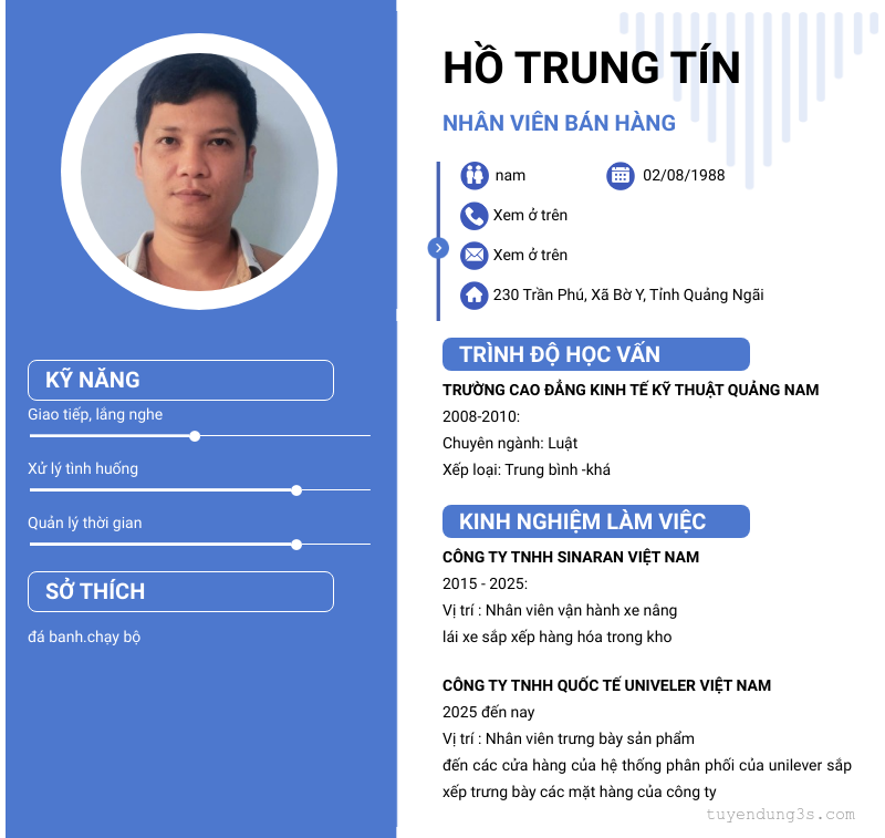 Mở xem thông tin đầy đủ ứng viên HỒ TRUNG TÍN chỉ với 2 điểm. Ứng viên được cập nhật ngày 26/09/2025