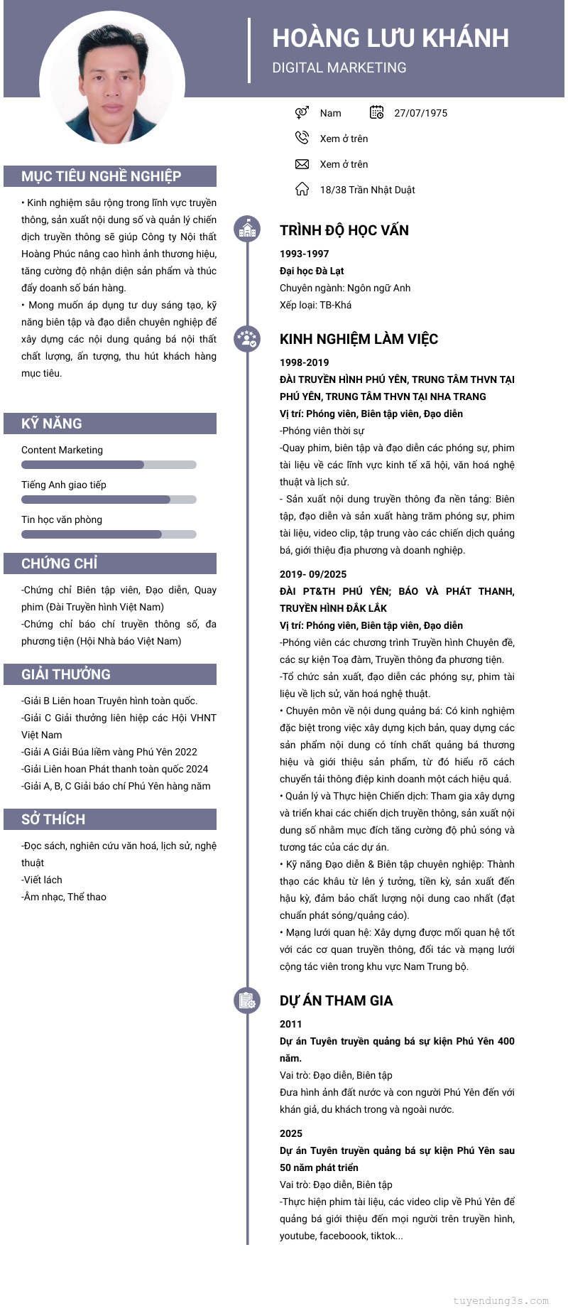 Mở xem thông tin đầy đủ ứng viên Hoàng Lưu Khánh chỉ với 2 điểm. Ứng viên được cập nhật ngày 09/10/2025