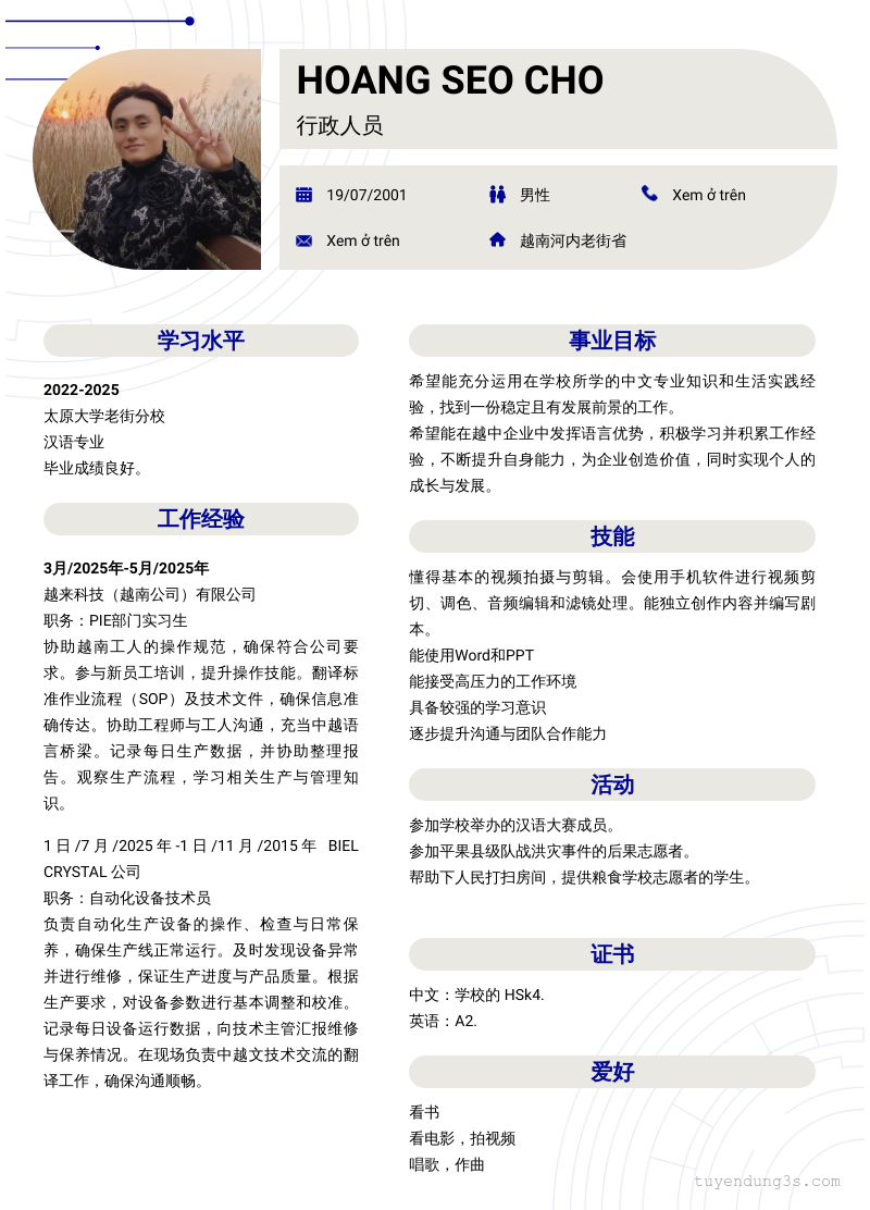Mở xem thông tin đầy đủ ứng viên Hoang Seo Cho chỉ với 2 điểm. Ứng viên được cập nhật ngày 07/11/2025