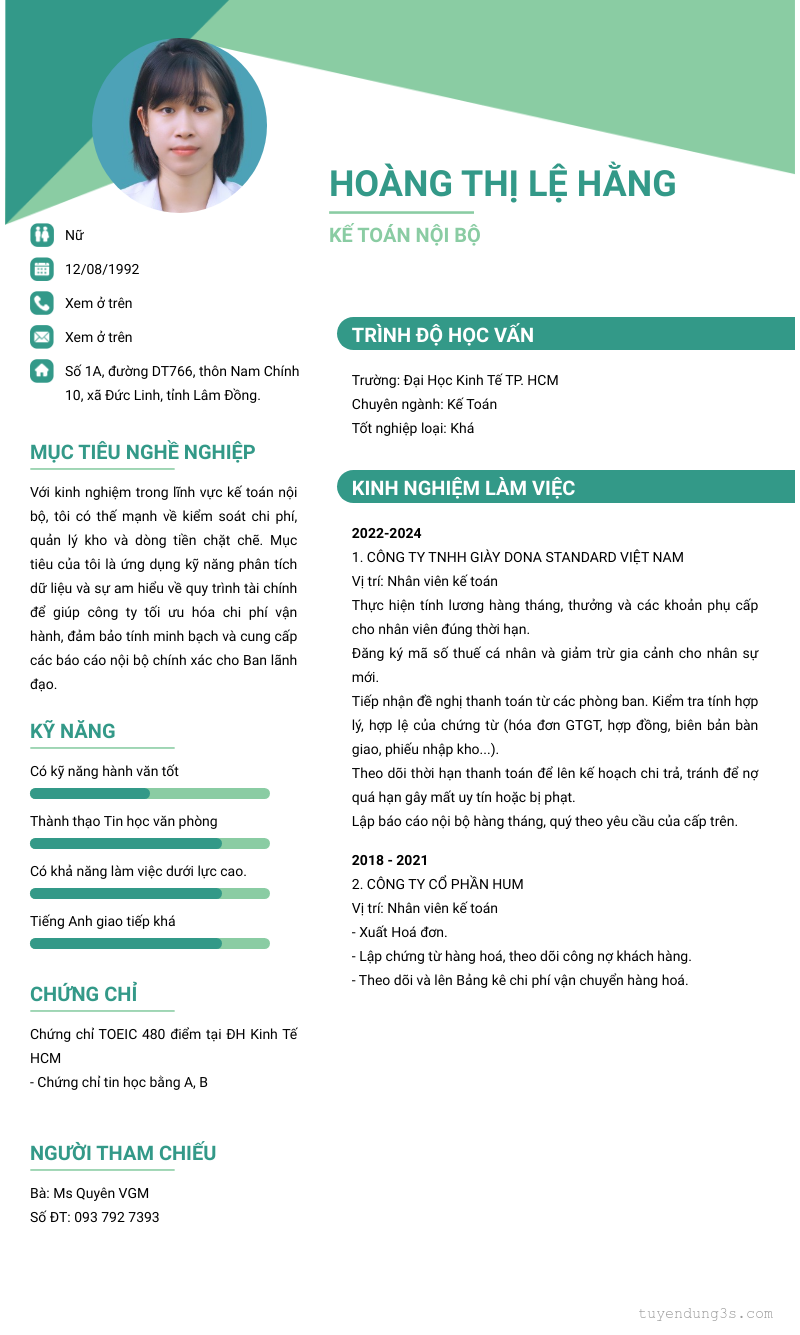 Mở xem thông tin đầy đủ ứng viên HOÀNG THỊ LỆ HẰNG chỉ với 2 điểm. Ứng viên được cập nhật ngày 05/01/2026
