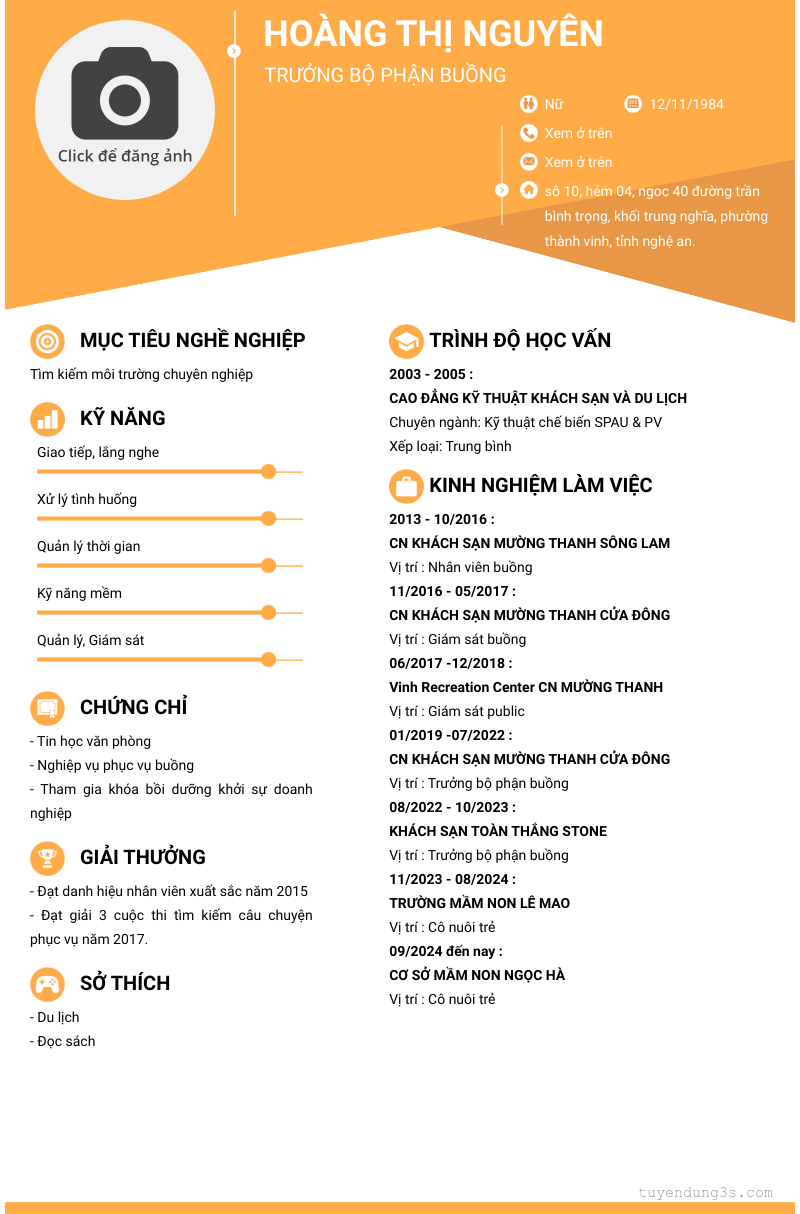 Mở xem thông tin đầy đủ ứng viên Hoàng Thị Nguyên chỉ với 2 điểm. Ứng viên được cập nhật ngày 23/11/2025