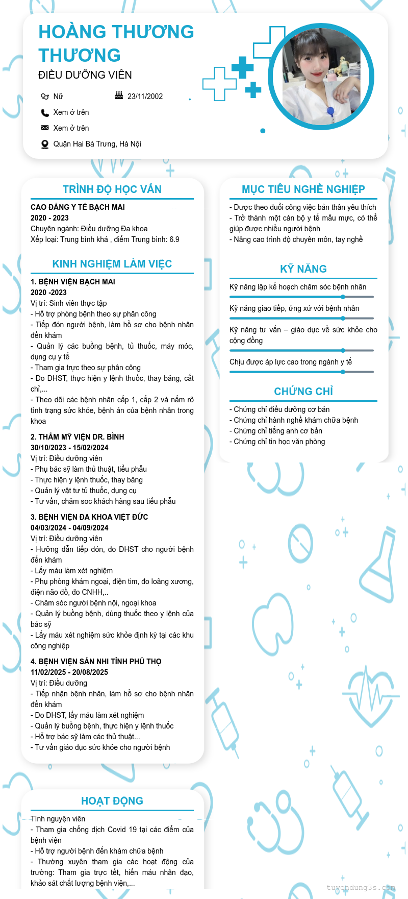Mở xem thông tin đầy đủ ứng viên Hoàng Thương Thương chỉ với 2 điểm. Ứng viên được cập nhật ngày 30/08/2025