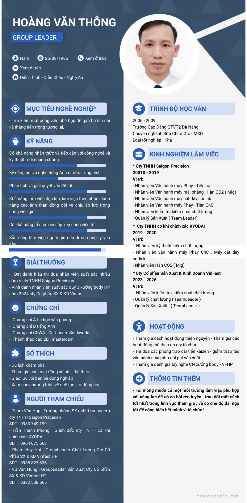 Mở xem thông tin đầy đủ ứng viên Hoàng Văn Thông chỉ với 2 điểm. Ứng viên được cập nhật ngày 02/04/2026
