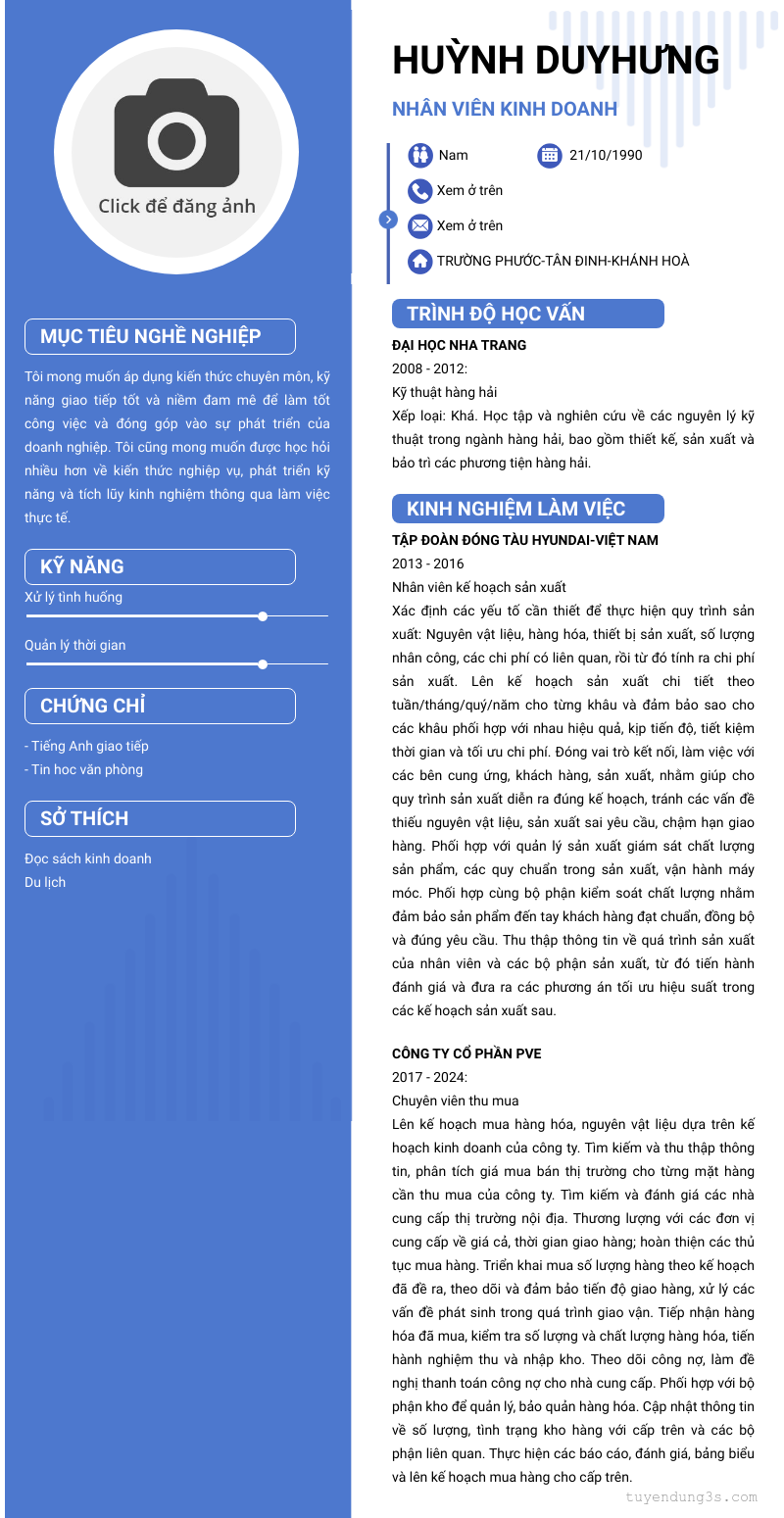 Mở xem thông tin đầy đủ ứng viên Huỳnh Duyhưng chỉ với 2 điểm. Ứng viên được cập nhật ngày 08/10/2025