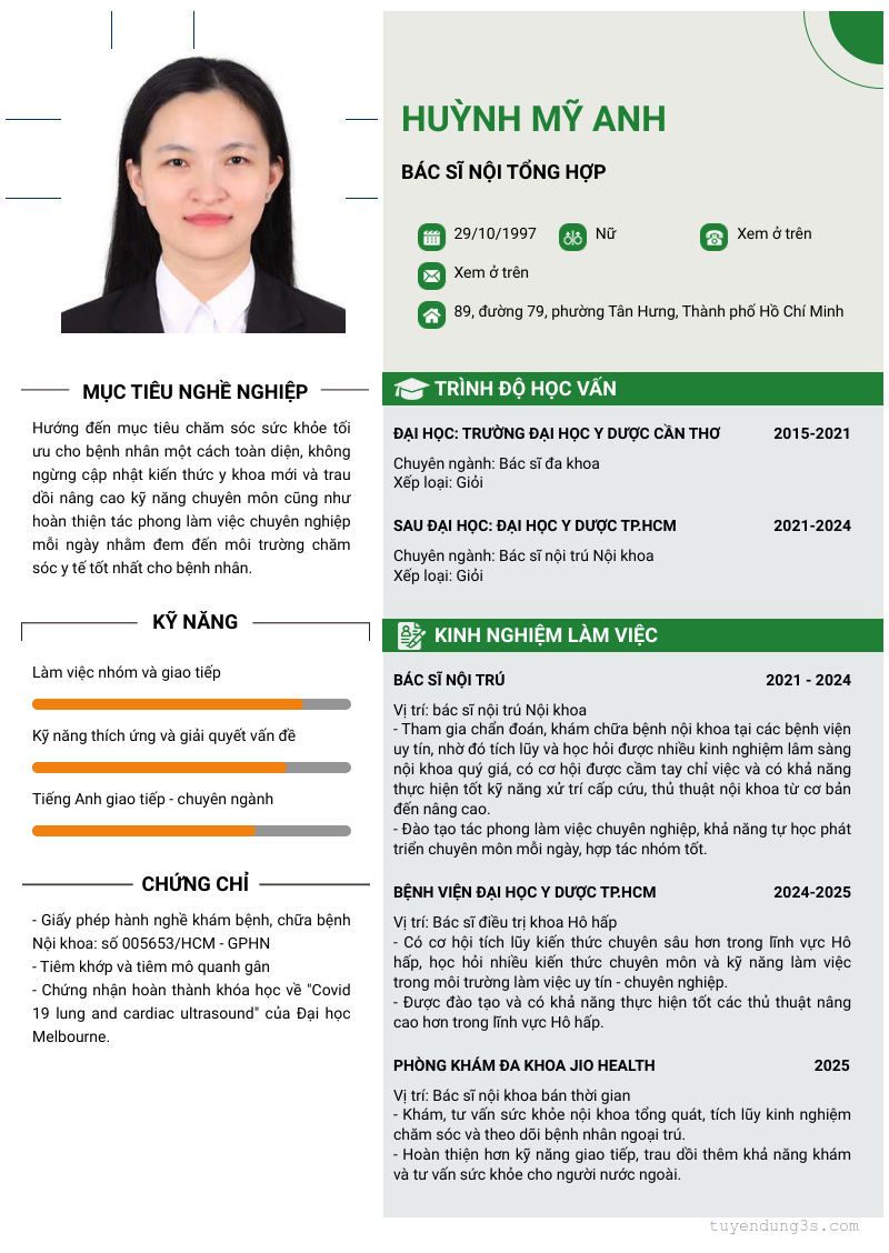 Mở xem thông tin đầy đủ ứng viên HUỲNH MỸ ANH chỉ với 2 điểm. Ứng viên được cập nhật ngày 15/10/2025