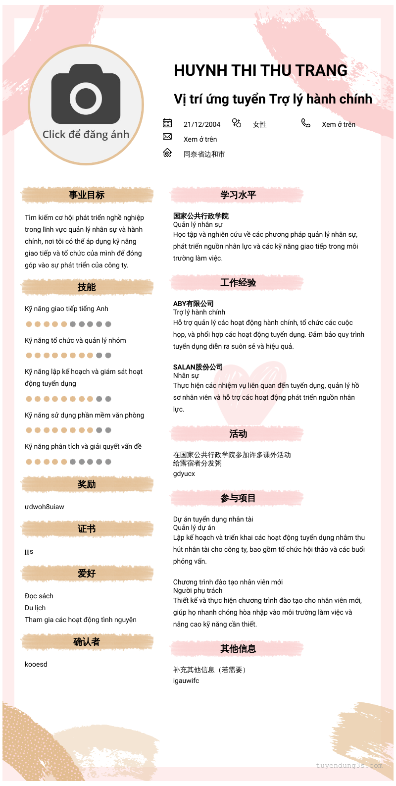 Mở xem thông tin đầy đủ ứng viên Huynh Thi Thu Trang chỉ với 2 điểm. Ứng viên được cập nhật ngày 21/10/2025